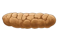 в форме колбаски, комковатый
